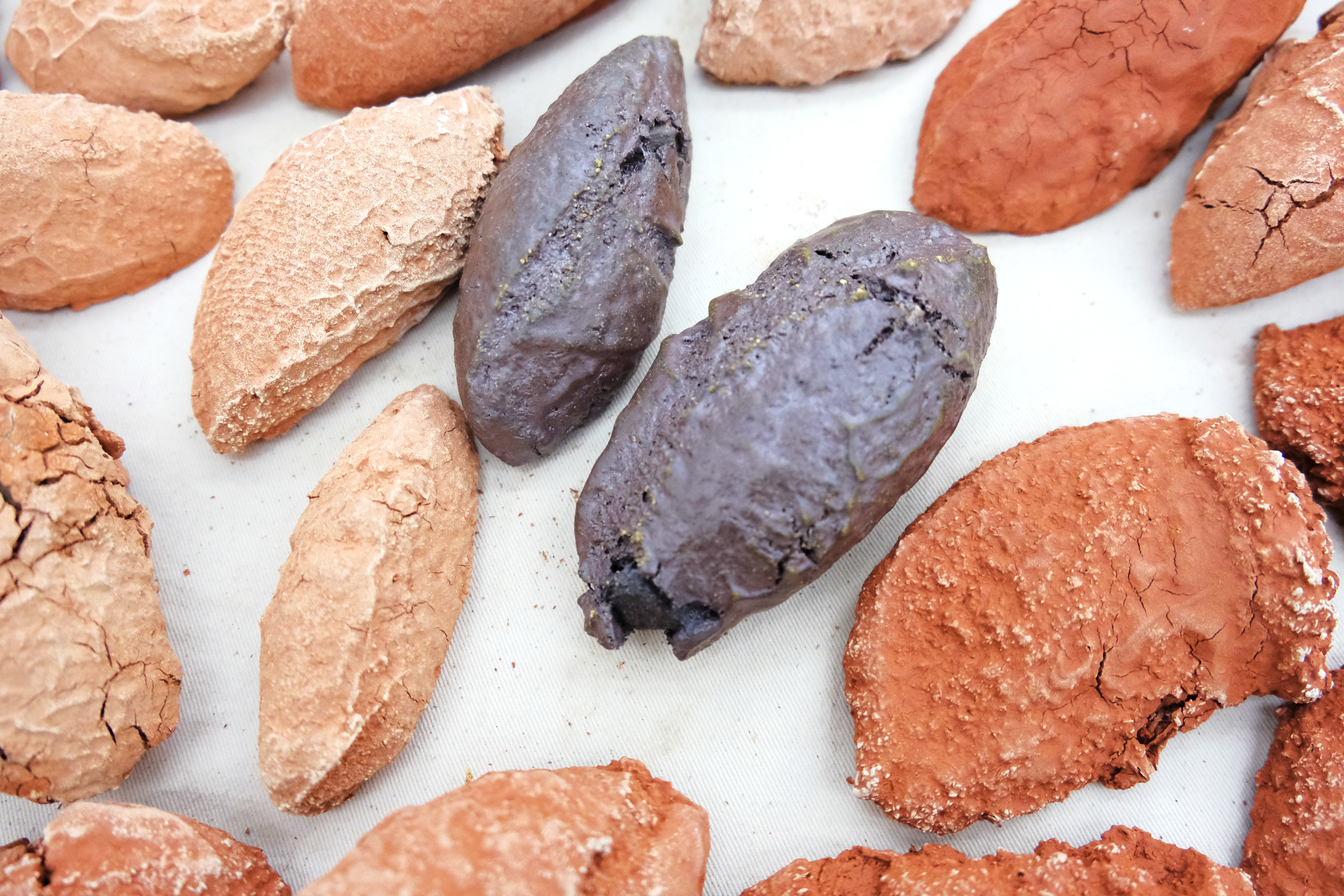 Sculpture in raw blue-clay, wood shaves, linseed oil and yellow iron-oxide